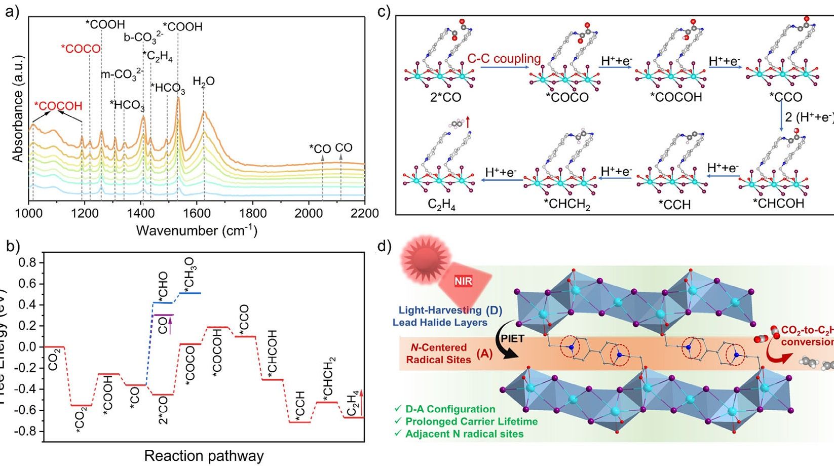 费泓涵课题组通过π-共轭紫精功能化的碘化铅实现近红外光催化CO2还原至C2H4, 研究成果发表于Angewandte Chemie