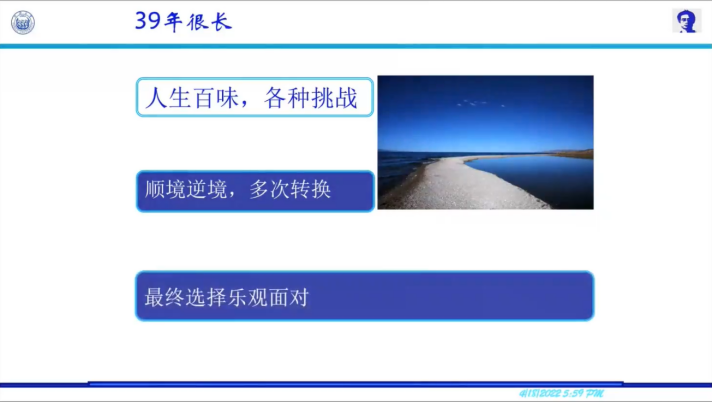 课程接近尾声部分,朱老师结合从教三十九载的经历,向大家分享了一段感人肺腑的人生感悟。