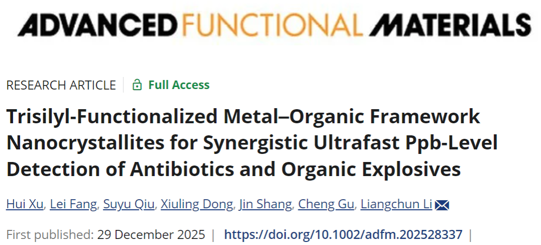 william威廉中文李良春教授课题组提出了基于三连硅功能化金属有机框架(MOF)微纳晶体的高性能传感策略,实现了对硝基抗生素和硝基爆炸物的快速(1 秒)、超高灵敏度检测,检测限低至0.6–1.9 ppb,并可循环使用。相关研究成果近日以“Trisilyl-Functionalized MetalOrganic Framework Nanocrystallites for Synergistic Ultrafast Ppb-Level Detection of Antibiotics and Organic Explosives”为题发表于化学与材料领域的知名期刊《先进功能材料》(Advanced Functional Materials)。