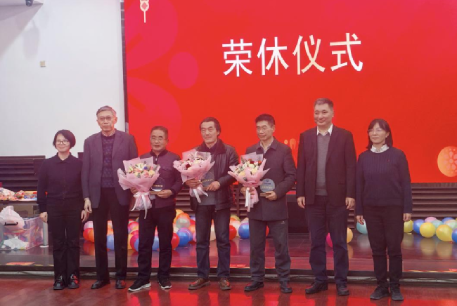 温情满满的荣休仪式是本次茶话会的重要环节。他们数十年如一日将青春与热血奉献给教育科研事业。学院领导为到场的荣休教师代表送上鲜花与奖杯,荣休教师代表分享了教育生涯的珍贵回忆与深情嘱托,朴实的话语中满是对学院的眷恋与对后辈的期许。