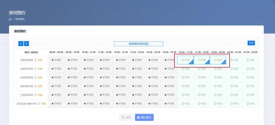 注:所属学生账号审核通过后可进行房间预约,预约完成的时间段不被锁定,其他用 户也可以预约 ,需要所属导师审核后预约时间方可锁定。