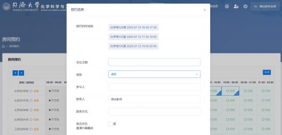 老师审核通过后,学生就可以进行预约,选择需要预约的时间按照设定的信息填写后提交